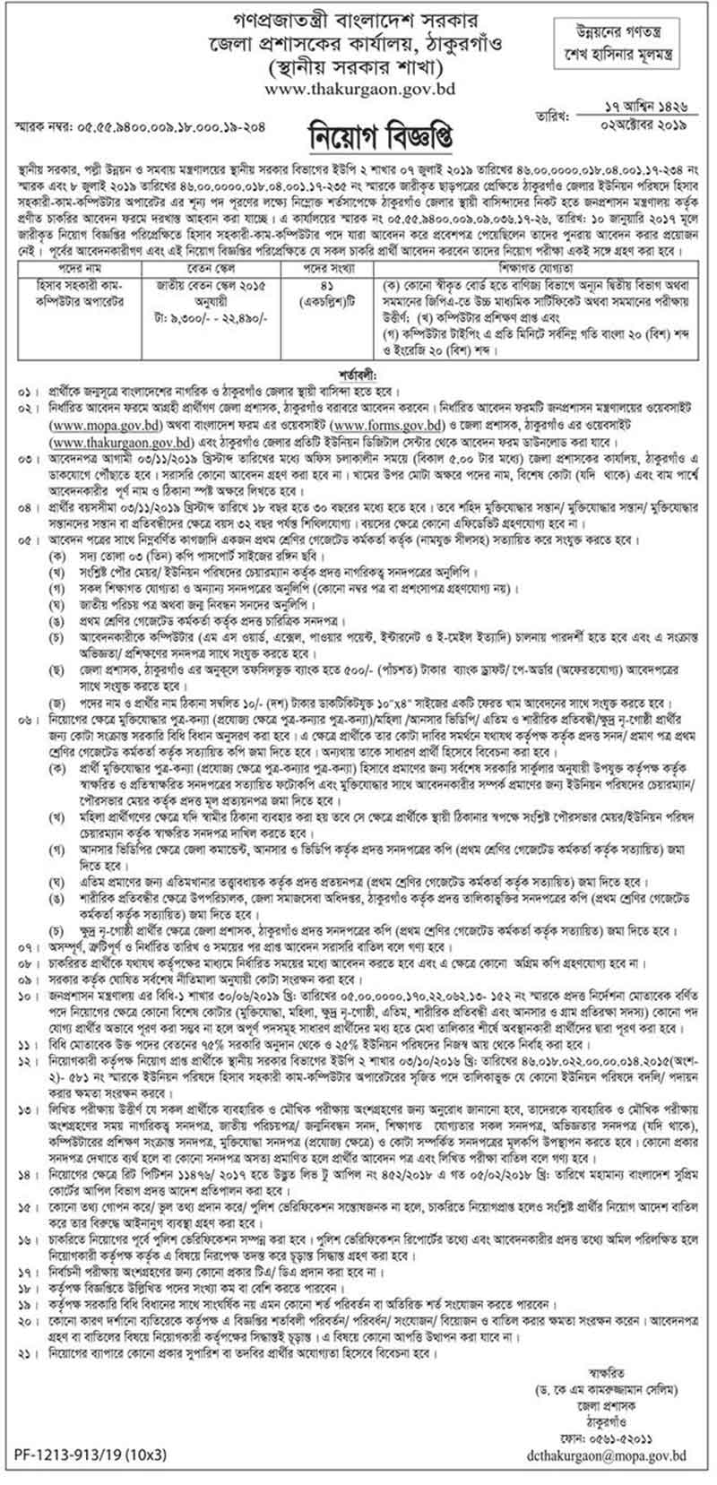 হিসাব সহকারী কাম কম্পিউটার অপারেটর (Post=41)
